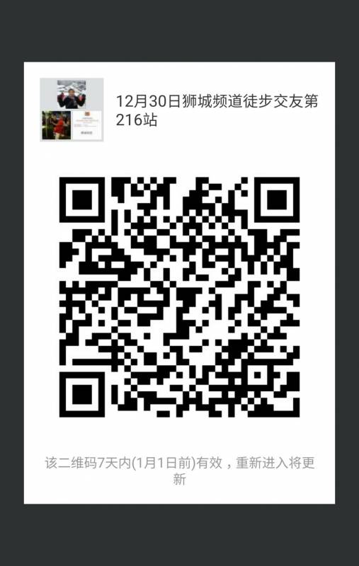 请扫描狮城频道徒步交友第216站的二维码参加,徒步后聚餐交友,欢迎小伙伴们一起来认识更多朋友吧!!!