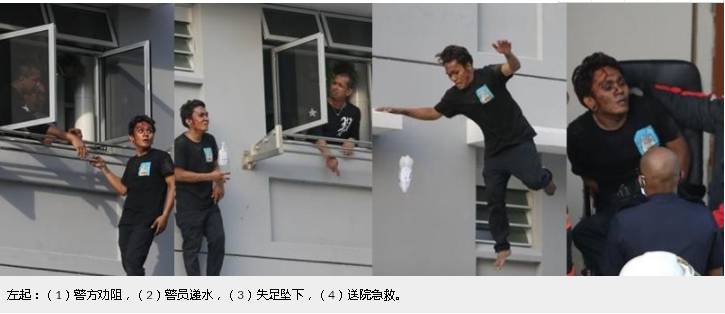 这起事件发在新加坡三巴旺组屋区,从图片可以看出,这哥们已经跳下去了!