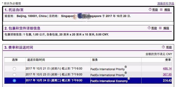 进入FedEx费率查询页面https://www.fedex.com/ratefinder/home?source=gh&cc=cn&language=sc,输入相应信息,价格与服务也简明易懂。