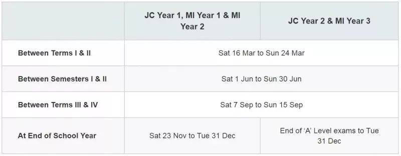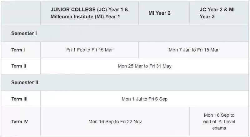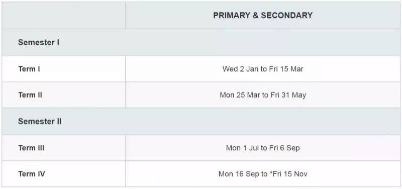 广告新加坡和国内不一样,每学年分四学期,每学期上课十星期,学年从1月2日开始至11月中结束。除了十一天公共假期之外,还有十二个星期的学校假期如下:
