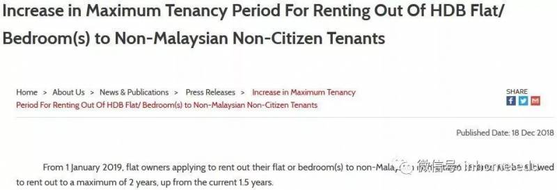 广告至于出租组屋或房间给新加坡公民和/或马来西亚人的最长租约期限则依旧保持在3年。