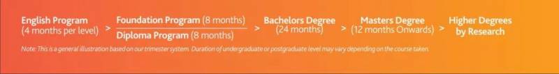 除了超级节约时间的本科课程外,JCU还提供了大学预科到博士全阶段的课程。其时间线如下: