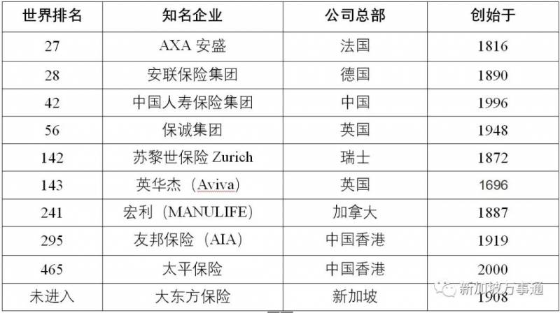 而且在新加坡扎稳脚跟的保险公司都是金融巨头,今天万事通就来给你们扒一扒他们的世界财富500强的排名!
