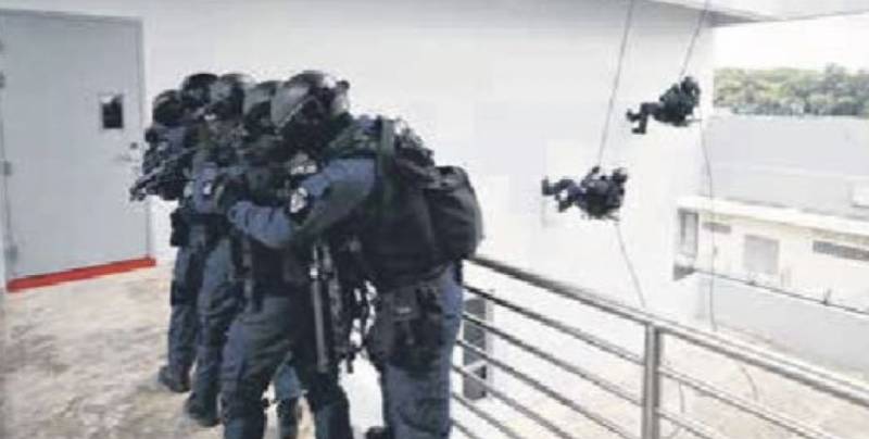 其实这紧张的一幕是新加坡特遣部队的模拟演习,组员们会被定期安排在不同的模拟场景进行训练,为各种突发状况做好积极地准备。