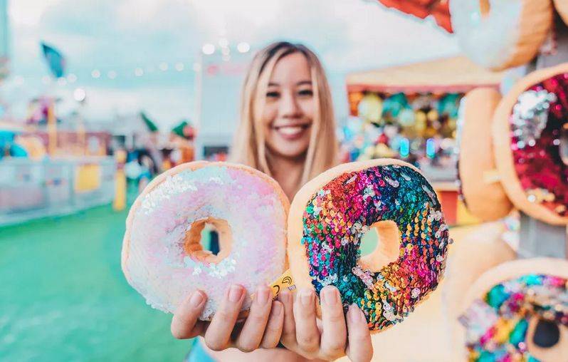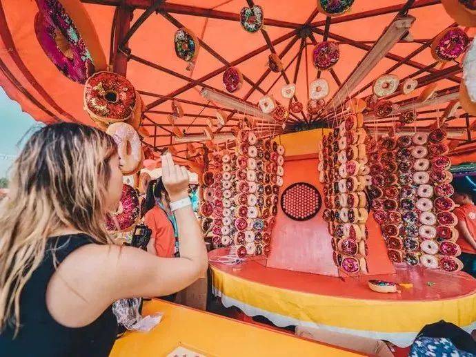 嘉年华美食摊位出售与众不同的小吃,玩累了,嗨够了,不用担心饥肠辘辘找不到用餐的地方。
