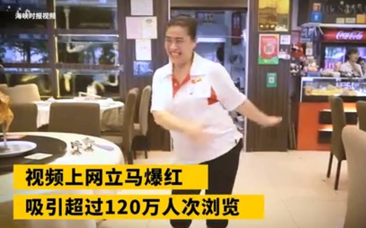 一顾客将“阿嫂”侍应生配合音乐“闻鸡起舞”上菜的视频放上网,引发网友疯传,超过120万人次浏览。视频中,可以看到一名中年女侍应生将一只鸡呈上餐桌后,就用火将鸡点燃,接着配合背景音乐手舞足蹈。