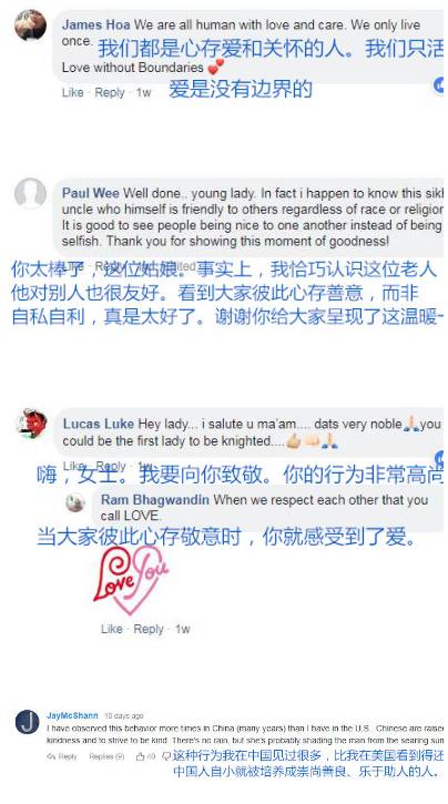 凑巧这一暖心的画面被另一名路人拍下,并发到了脸书上。