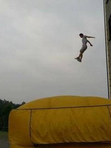 他突然摇晃身子跟着失足坠下,庆幸男子最后跌落在安全气垫上。