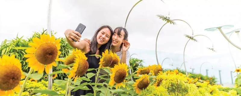 来到位于天台的向日葵花园,置身于 500 株艳丽的黄色花朵中,亦可放眼远眺机场跑道和停机坪的壮美景色。