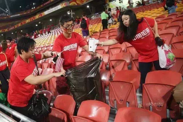 中国球迷所在看台一片整洁,