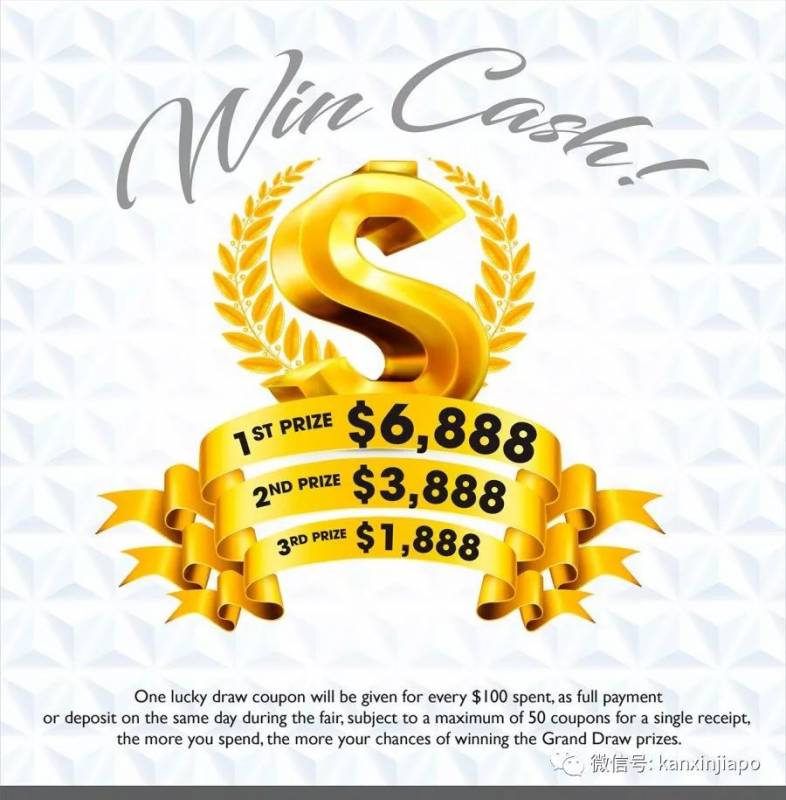 只要现场订购产品或服务预付款项超过100新元,就有赠品相送,还有机会参加总值高达12000新元的现金大抽奖,过个大肥年!