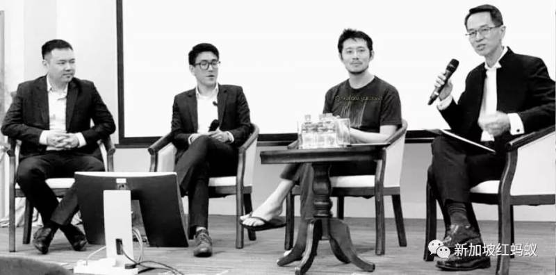 互联网上流传的这张照片显示,李显龙和何晶的儿子李鸿毅(右二)出席一个座谈会时,脚穿拖鞋惹人注目。(互联网)