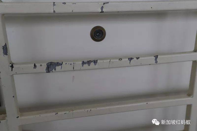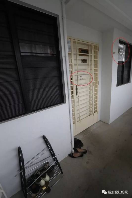《新明日报》记者今早走访案发现场时发现,邻居的百叶窗破了,门上留下至少75道深浅不一的刀痕,相信都是菜刀嫂挥砍留下的,铁门也有油漆剥落的痕迹。(红蚂蚁目测照片后,觉得建屋局这门质量也真好,挨了75刀后一点儿受伤的痕迹也看不出。)