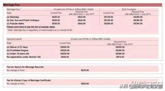 1)结婚对象里,如有一方是新加坡人/PR,价格从26新币升至42新币。