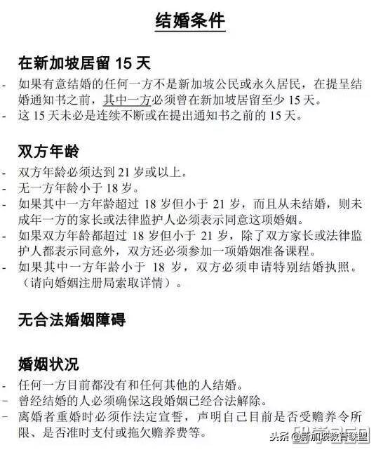 1)结婚男女双方必须均为中国公民,且永久居住在新加坡(即持有效PR者)。