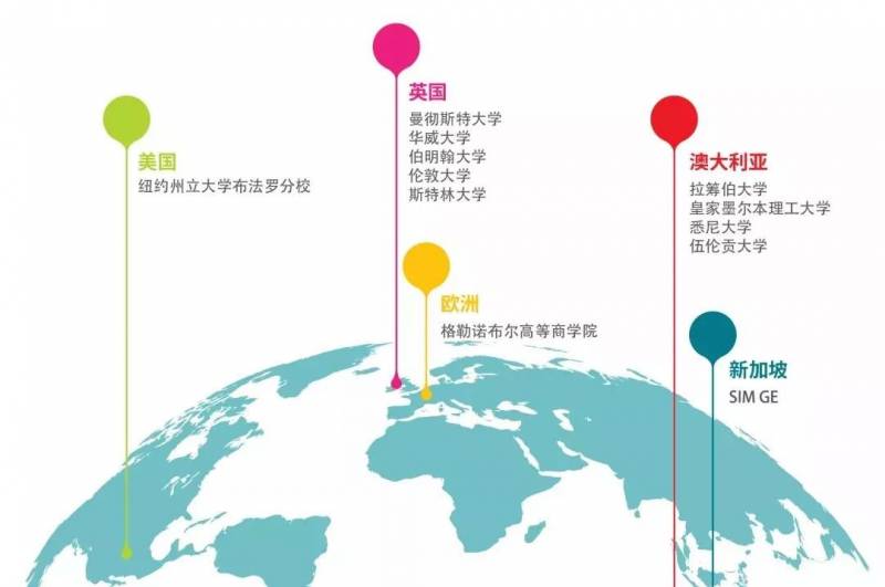 其中不乏一些世界级一流名校,伦敦大学、皇家墨尔本理工大学、伍伦贡大学、雪梨大学、华威大学、伯明翰大学、斯特林大学、曼彻斯特大学、纽约州立大学布法罗分校、拉筹伯大学等等。