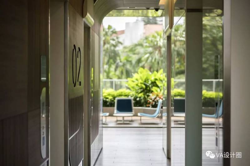 青翠的景观连接了公共户外空间,而塔楼升降机大厅通过使用天然材料来引入自然景观到室内。