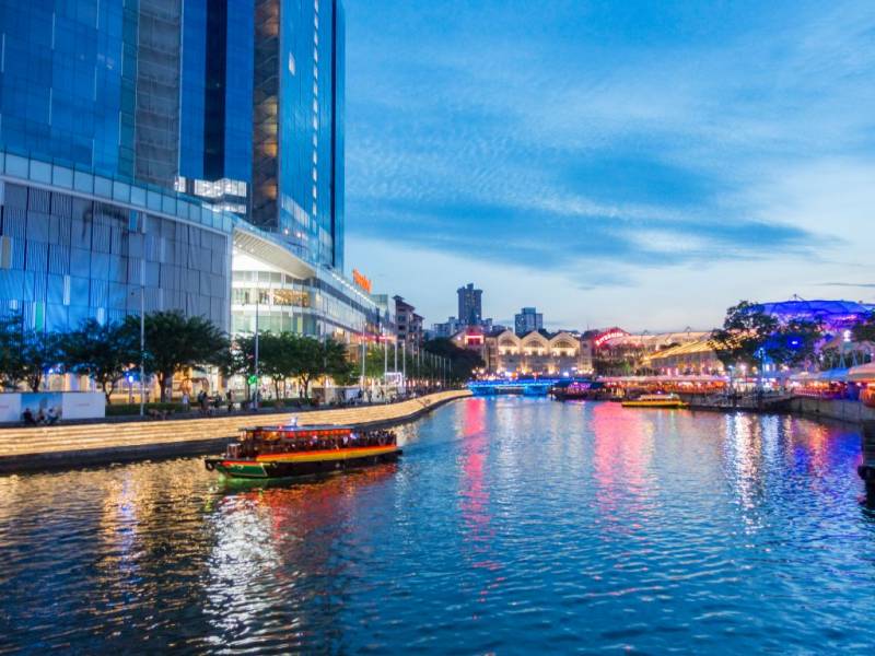 坐船在新加坡河上轻游
