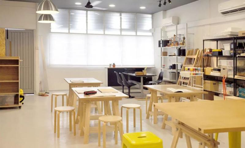 这家画室靠近乌节路,大片的落地窗设计让空间光线十分充足,望出去也是十分开阔。