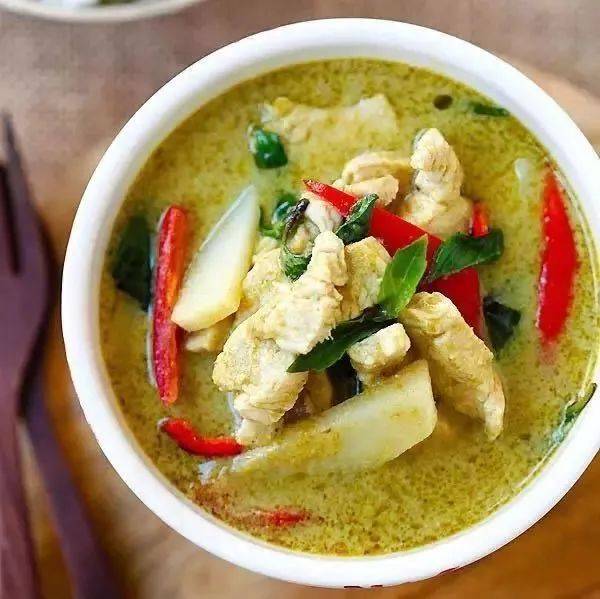 地道的泰国绿咖喱也是辣味爱好者可以尝试的美食之一。看似诡异的颜色让很多第一次见到的人望而生怯,不过完全不用担心,绿咖喱来自纯天然的原料,用新鲜的绿色辣椒,鱼露,柠檬草和Kaffir Lime 叶等原料制作而成,辣味也会更加的温和。