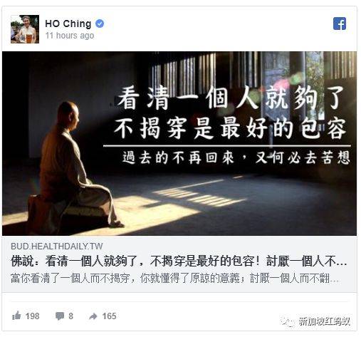 众所周知,新加坡总理李显龙的夫人何晶有一大嗜好,就是喜欢在面簿上转载各式各样的文章。