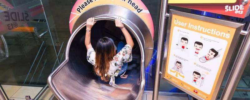 前往第 3 航站楼,恣享新加坡最高,也是全球机场中最高的滑道滑行体验。从 12 米高处(相当于4层楼高)顺着滑道下滑,最高可以达到 6 米每秒的速度!