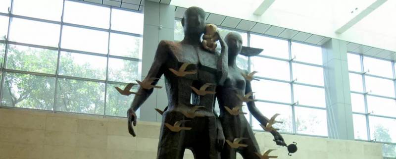 来自中国的艺术家韩美林创作了这个重达 900 公斤的巨大雕塑,其所表达的主题既是儒家所重,亦是全球通行 —— 家的重要。雕塑通过三种金属表达了家的概念:父亲是钢,母亲是铜,孩子是金,栖于家长之肩。