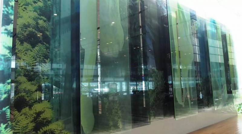 澳大利亚艺术家珍妮特·劳伦斯(Janet Laurence)巧妙地将艺术和自然融合到一起,利用影像平板和玻璃绘画的重叠,营造出一种模糊的空间感,挑战您对位置、环境和稳定的感觉认知。这样一来,透明的影像自作品内外投射出反射与镜像,在身后的白色墙壁上投下斑斓的色彩与阴影。