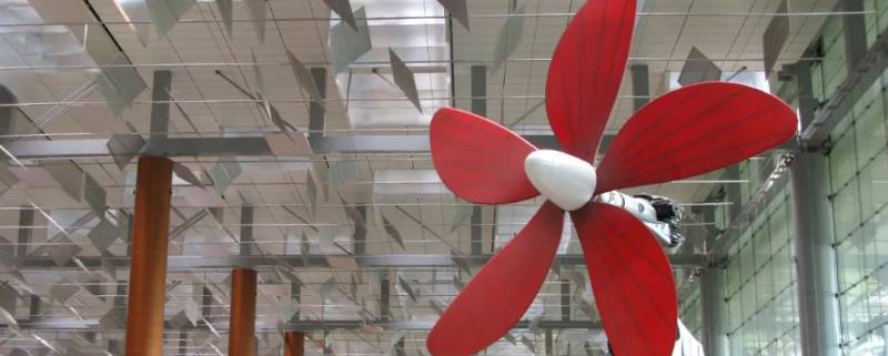 由 Christian Moeller 全力打造的近 13 米高的雏菊,象征性的螺旋式推进形成花朵的模样,巧妙地昭示著热带新加坡这个植物王国。雕塑的颜色同样选取新加坡的国家代表色 —— 红色和白色。在内置感应器的驱动下,随着行人的出现与步伐,螺旋图案也开始不规则的变幻形态。