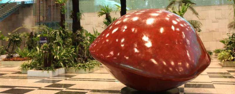 这个巨大的海红豆出自 Kumari Nahappan 之手,青铜所制,饰以红色。海红豆的创作是为了庆祝新加坡近 200 棵海红豆树的存在。一直以来,当地的孩子们都有收集海红豆的习惯,豆子可以用来装饰珠宝,在古印度也曾用来称量黄金。