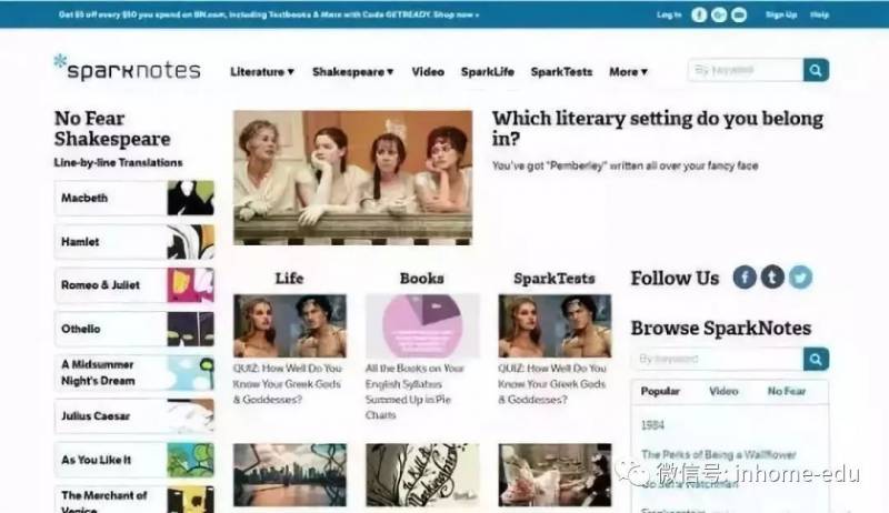 SparkNotes是文科生的天堂,1999年网站由哈佛大学学生创建,为广大学子提供海量而优质的文学指南学习资料。