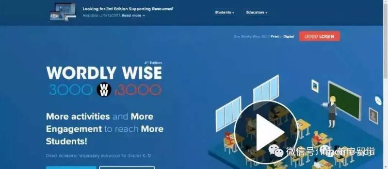 这个网站是美国词汇学习市场的老大,尤其受到中国家长的欢迎,适合K-12年龄段的英文词汇学习。它的特点是把单词给串起来,放到一个短文中,一个场景中,让孩子记住他的意思。Wordly Wise 3000 提供的词汇不是日常词汇,是专业词汇,是专业写作的基础。