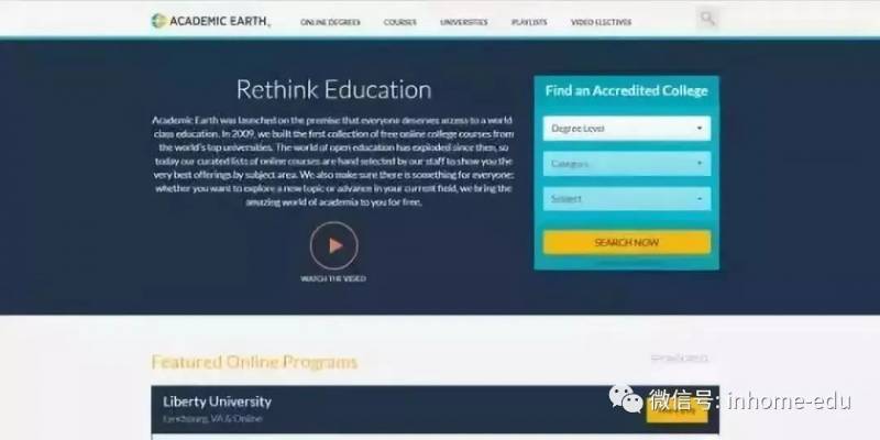 2009年3月4日地球学术 Academic Earth创立,创始人是Richard Ludlow。网站提供各大学的免费在线视频课程,非常权威。