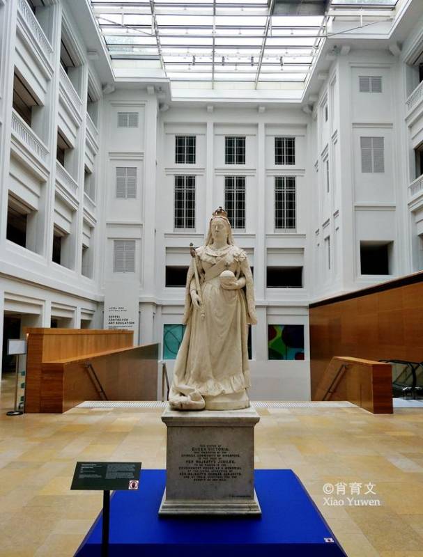 上了这个台阶,有一座维多利亚女王雕象,是她登基五十周年时,由新加坡华人赠送的礼物。这层展厅称为星展新加坡展厅,顾名思义,是由星展银行捐建的。展览的名称:贵姓大名?参观指南说,通过这个提问,希望激发人们思考:艺术以何种形式介入个人和社区生活?如何透过新加坡艺术来认识这片土地?