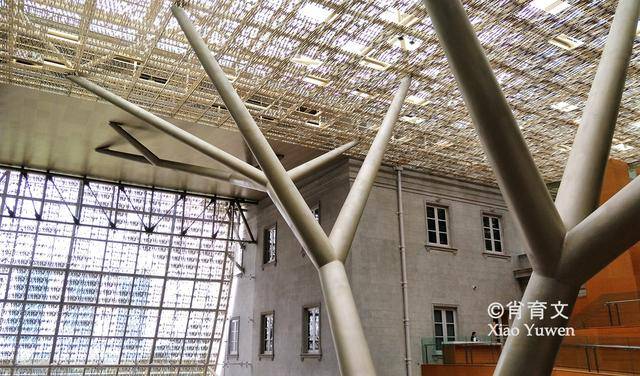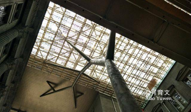 步入大厅,阳光从淡金色和银色的屋顶中漏下,工程师尽力在保持历史的同时,植入树状支架,在顶部设置掐丝金属和玻璃组成的屋顶。希望用类似天然材料编织的形式为大家带来一个美丽的公共空间,为登到顶层的游客带来了不一样的视觉体验。