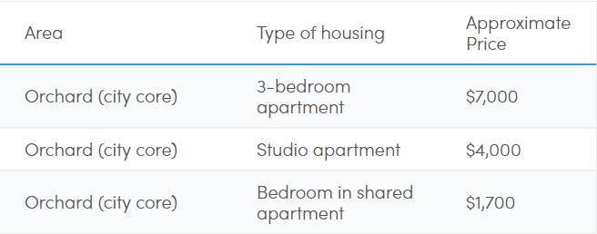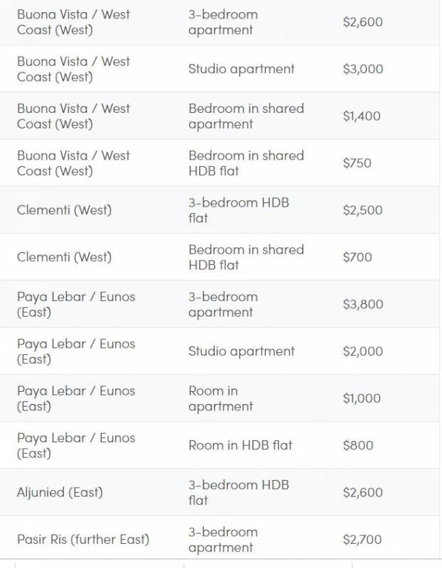 公寓单间 :800-1000新币/月