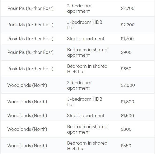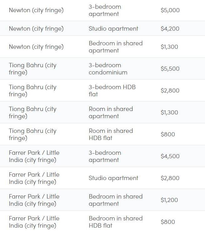 新加坡各区租金