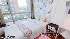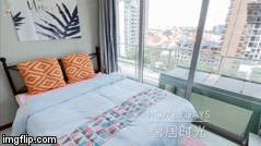 (看着看着居然还可以走到床上,体验一下早上起床之后的视野,-喂!有没有记得脱鞋!)
