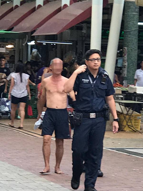 (新加坡29日讯)咖啡叔不知何故当众脱光,全裸大闹大巴窑巴刹逾15分钟,在菜摊乱扔葱头、辣椒等,吓坏摊贩公众,当场被警方逮捕。