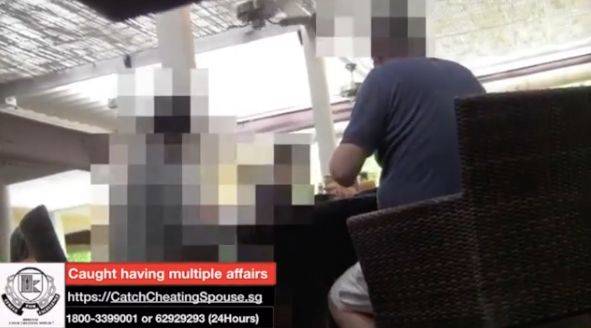 画面中,颜睿杰与婚外情对象一起在新加坡东部的一间四星级酒店喝咖啡。