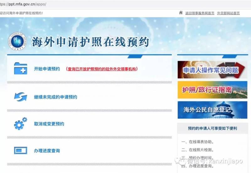 早在2016年,外交部就推出了海外申请护照在线预约系统(https://ppt.mfa.gov.cn),最近该网站增设了“护照办理进度查询”、“收集领事服务评价”等新功能。