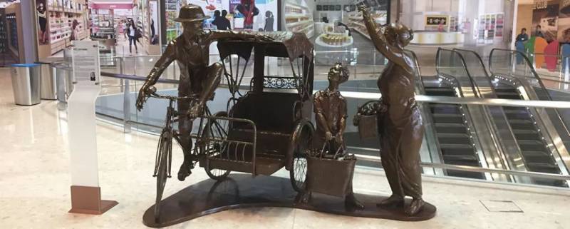 “嘿大叔!” 是由新加坡文化奖获得者张华昌创作的青铜雕塑作品。新加坡人和外国友人能轻易地认出这具描绘了 20 世纪 50 年代一位母亲和儿子逛完市场后向一位骑三轮脚踏车的车夫打招呼的怀旧景象雕塑。