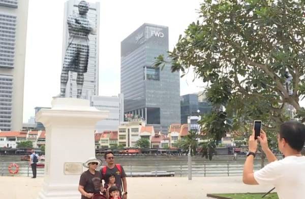 (新加坡30日讯)新加坡著名地标莱佛士雕像竟然“消失”了?数名公众在驳船码头目睹了这一个前所未见的一幕。