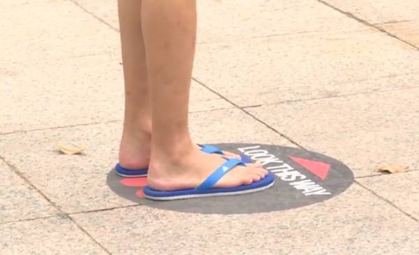 站在指定位置,可看见莱佛士雕像“消失”了。(《8频道新闻》截屏)