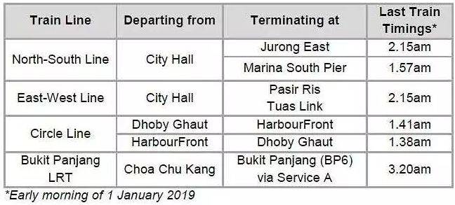 眼看着2019年就要到来了!相信很多朋友都准备去跨年了吧!那么跨年当晚的巴士和地铁服务时间表你一定不能错过啊!在看烟花倒数的同时,怎么回家也是个问题啊!新捷运26日表示,旗下的地铁东北线(NEL)和滨海市区线(DTL)的服务时间将延长至少两小时。