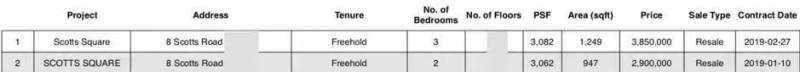 2019年(12年后),乌节路ScottsSquare 交易价仅$3000/平方尺左右。每尺大约下降了15%至45%!