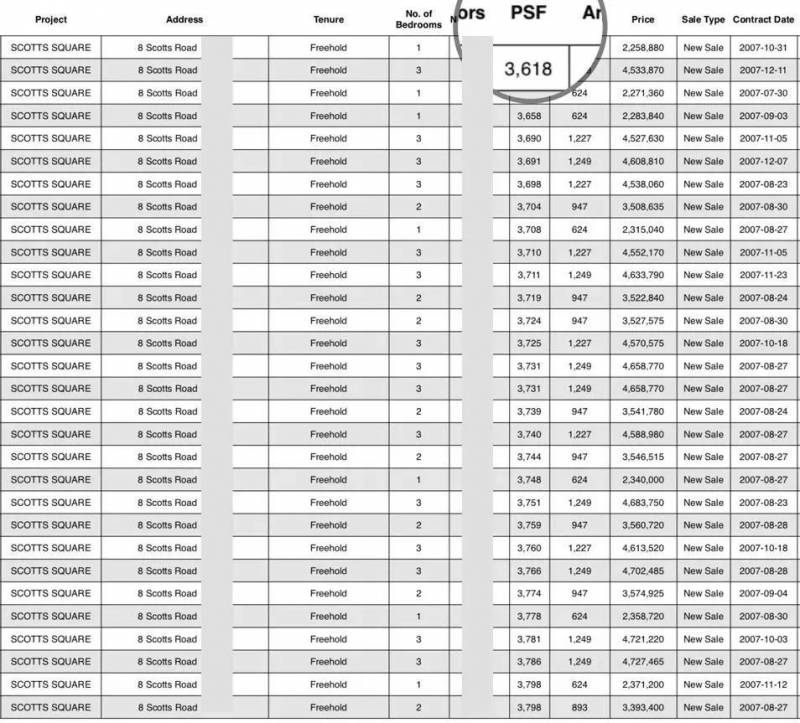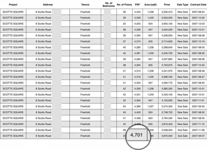 位于“乌节路ScottsSquare”,在2007年交易价为 $3618至$4701/平方尺。