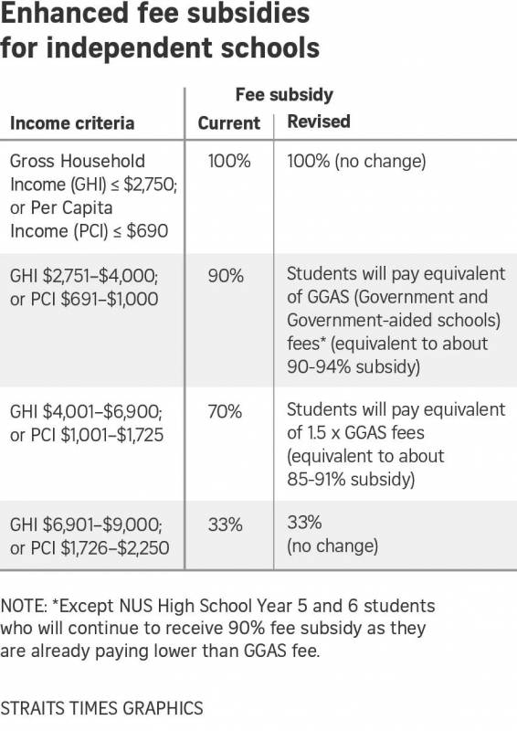 对于每月家庭总收入在4000新元到6900新元之间的学生,支付政府和政府资助学校学费的1.5倍,也就是每年450新元左右。