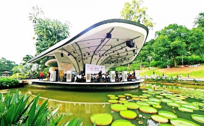 喏,就是这里啦。在这个舞台正对方是一片非常广阔平坦的草地,大家可以带餐布,在草地上席地而坐。野餐或午睡,吹着席席的风,听着鸟儿高歌,周末还能更美好一点不?