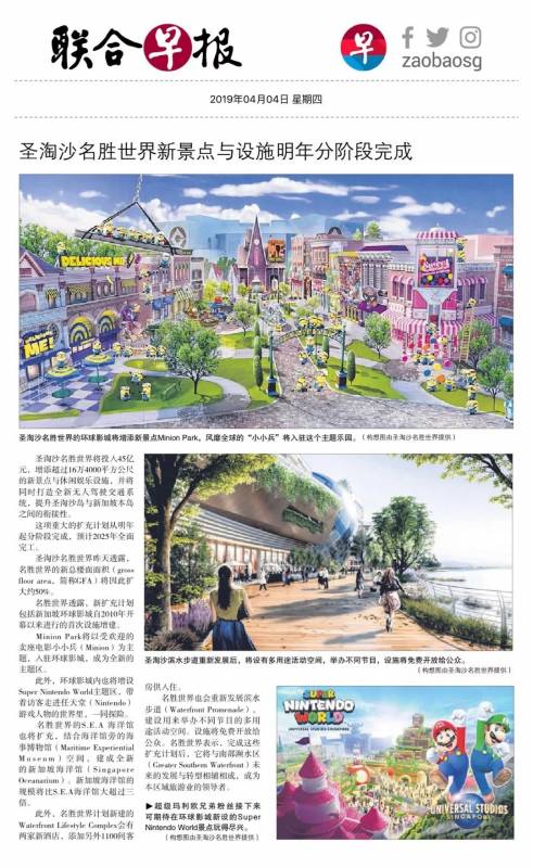 圣淘沙名胜世界的环球影城将增添新景点Minon Park,